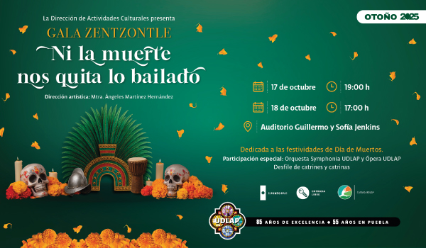Esta gala, que por primera vez se realizará en el mes de octubre, es una de las presentaciones más esperadas de la cartelera cultural de este semestre, pues el Equipo Representativo Cultural Zentzontle UDLAP, agrupación que cada año ofrece una puesta en escena única, pondrán en escena a la danza, la música y el arte escénico para honrar las raíces mexicanas. “Desde enero comenzamos a trabajar con miras a este espectáculo, pero es desde mayo que el equipo se dedica de lleno al repertorio de la gala”, compartió Ángeles Martínez Hernández, directora artística de Zentzontle UDLAP.