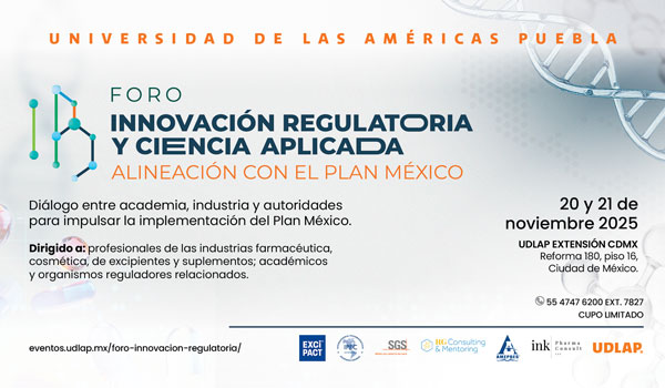 El Foro “Innovación Regulatoria y Ciencia Aplicada: Alineación con el Plan México”, representa una iniciativa estratégica de la UDLAP para contribuir, desde la academia, al fortalecimiento de la infraestructura regulatoria y científica del país, atendiendo los desafíos y oportunidades que plantea el entorno actual para la industria farmacéutica y afines.