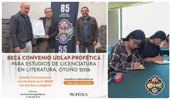 · Presentaron la Beca Convenio UDLAP–Profética, Apoyo Educativo que representa una oportunidad única para que jóvenes con vocación literaria desarrollen su potencial en un entorno académico de excelencia.
