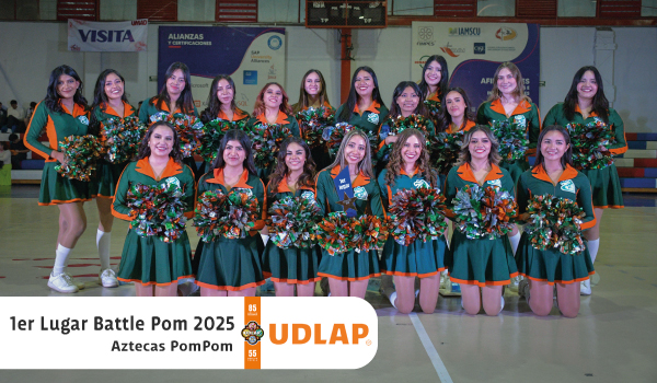 - Por segundo año consecutivo, la organización estudiantil de la UDLAP ganó el Battle Pom, demostrando con ello la excelencia que caracteriza a toda la comunidad universitaria.