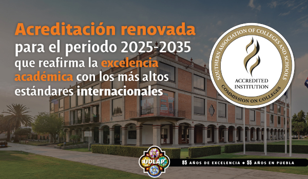 El día de hoy en la ciudad de Nashville, Tennessee, la Universidad de las Américas Puebla obtuvo la reafirmación de su acreditación institucional en nivel VI sin observaciones ni recomendaciones ante la Southern Association of Colleges and Schools Commission on Colleges (SACSCOC), para el periodo 2025-2035, reafirmando con esto su compromiso con la excelencia académica, la calidad internacional, el enfoque integral, la investigación relevante, la facultad de prestigio y la cultura de mejora continua que reafirma su posición como la mejor opción para los jóvenes que desean realizar sus estudios de educación superior.
