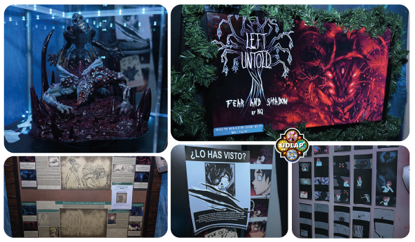 En la exposición, Natalia Reyna, estudiante de la UDLAP, presentó de forma temática e inmersiva una introducción al universo de left untold y dos de sus historias, con lo que el público pudo conocer más del proceso detrás de su realización. Entre las piezas exhibidas destacó “Thin & Ugly”, escultura en arcilla polimérica realizada por la propia artista como referencia tridimensional para el diseño y dibujo de personajes del cómic.