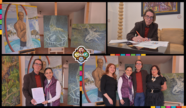 En ese sentido, el artista expresó su orgullo de que estas piezas formen parte del acervo de la UDLAP: “para mí es un orgullo que estén en esta casa de estudio porque es un lugar que respeto y quiero de toda la vida y además creo que son obras que van a estar bien resguardadas y serán difundidas”.