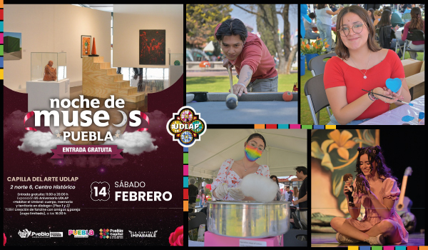 En el marco del Día del Amor y la Amistad, la UDLAP llevó a cabo una serie de actividades culturales y de convivencia que fortalecen los lazos dentro y fuera de la comunidad, las cuales van desde una jornada conmemorativa en el campus, la presentación de la obra de teatro Crónicas de una romántica empedernida, para culminar la semana con su participación en la primera Noche de Museos de 2026.