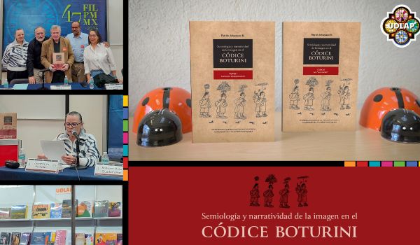 En el marco de la Feria Internacional del Libro del Palacio de Minería, se presentó el libro Semiología y narratividad de la imagen en el Códice Boturini, una obra en dos tomos coeditada por la Universidad de las Américas Puebla y la Universidad Nacional Autónoma de México. El trabajo, autoría del Dr. Patrick Johansson, propone una lectura de la imagen como lenguaje y forma de conocimiento en uno de los documentos pictográficos más importantes para la reconstrucción de la historia antigua de México.